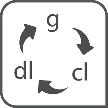 Nema potrebe za mjernom posudom: s funkcijom za tekućine jednostavno prebacite mjerenje suhih sastojaka (g) u tekuće sastojke (cl/dl). Bez rizika od pogreški u pretvaranjuu mjernih jedinica.
