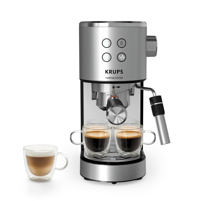 Virtuoso+ sustav za tampiranje kave marke Krups donosi vam espresso kao iz kafića, uz jednostavnu i preciznu pripremu. Primjenjuje idealan pritisak za bogatu kremu i intenzivnu aromu, prilagođavajući se pripremi jedne ili dvije šalice. Dizajniran za korištenje bez nereda i postojano dobre rezultate, pojednostavljuje vašu rutinu pripreme kave, za savršeni espresso kod kuće.